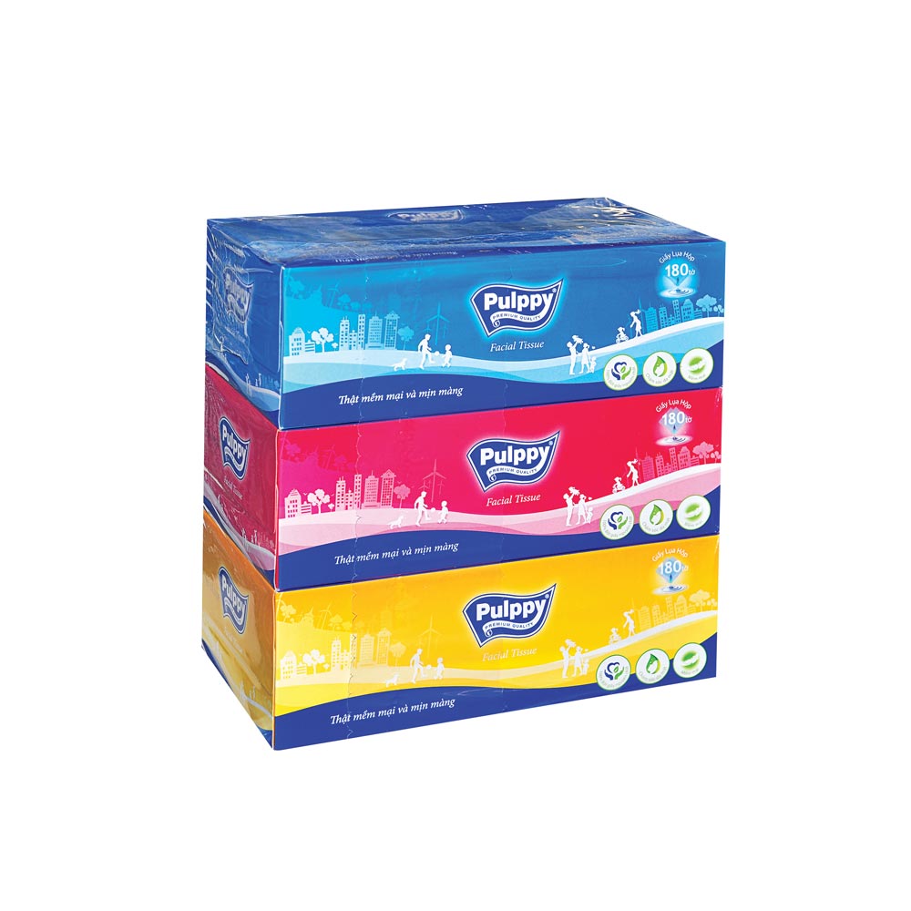 Tên sản phẩm: Khăn giấy Pulppy Classic 180 tờ, lốc 3 hộp