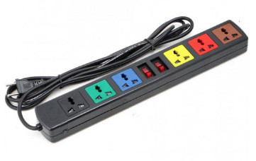 Ổ cắm điện LiOA màu đen chủ đạo nổi bật là sáu màu của 6 ổ, dễ quan sát, tránh nhầm lẫn. Hai công tắc tắt - mở điều khiển mỗi 3 ổ ở hai bên, giúp bạn tiết kiệm điện khi không dùng các ổ ở bên còn lại.